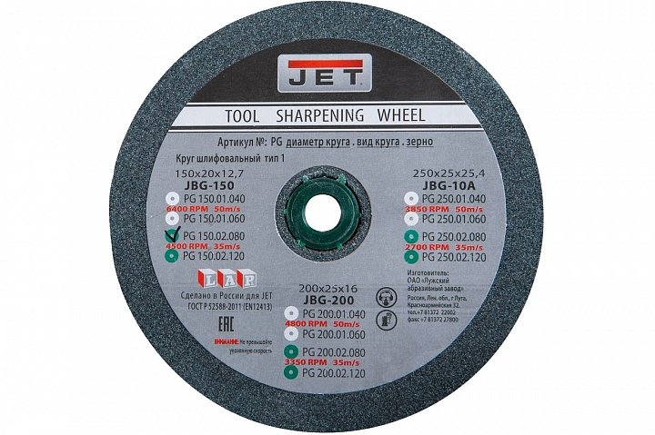 Круг для точила 150x20x12,7 мм, 80G, зеленый (JBG-150)
